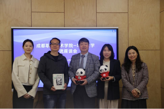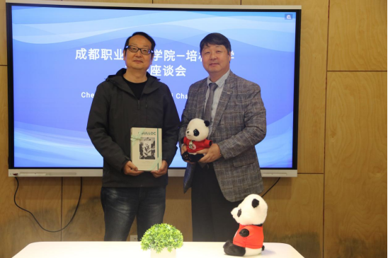 座谈会上,国际教育学院院长钟富强对金石出处长和高春艳老师的到访表示热烈欢迎,并介绍了我校的办学特色与国际交流合作成果。钟富强指出,作为一所植根于成都、服务于区域经济发展的高等职业院校,我校始终坚持“立足成都,面向国际,服务社会”的办学理念,构建了产教融合、校企协同的特色育人模式。在国际交流合作方面,钟院长重点介绍了我校与泰国、英国、新加坡等国家教育机构建立的合作关系,特别展示了我校“熊猫工坊”项目的建设成果,分享了学校与意大利库内奥美术学院和英国林肯学院的合作办学情况。他希望通过此次交流,能够与韩国培材大学建立合作桥梁。