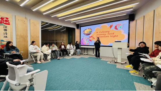 2025年11月13日晚,“舌尖之旅:A Culinary Journey”主题英语角活动在国际研习中心成功举行。本次活动吸引了50余名学生热情参与,其中包括8位来自泰国和蒙古国的留学生。现场国际文化氛围浓厚。同学们在美食文化交流中,共同度过了一个充实而难忘的英语之夜。