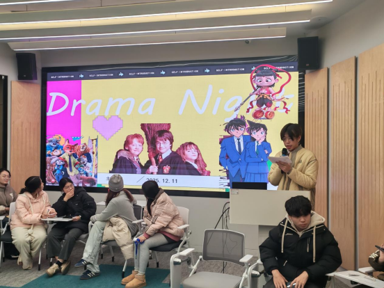12 月 11 日晚,国际研习中心内灯光柔和、暖意融融。本学期第六期英语角活动 ——Drama Night如期拉开帷幕。来自不同学院的众多学生齐聚一堂,以趣味角色为纽带,开启了一场别开生面的英语交流之旅。现场氛围热烈,欢声笑语此起彼伏。