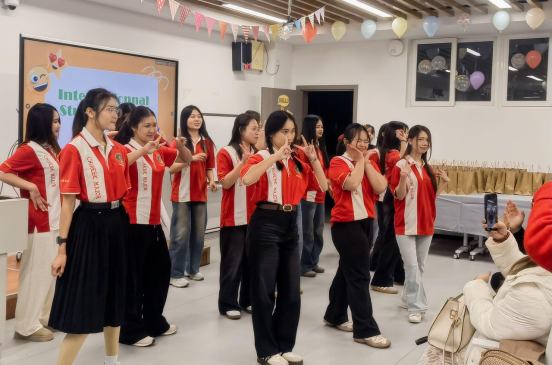 紧接着的“你说我猜”暖场游戏迅速点燃现场气氛,中外学生搭档配合,在欢声笑语中展现了良好的英语表达与团队默契。然后,外语风采汇演将活动推向了高潮。来自各学院的同学们与留学生联袂呈现了十个精彩节目,涵盖独唱、合唱与舞蹈等多种形式。从深情动人的《Love Is Gone》《Wonderful U》,到活泼轻快的《What a Day》《Me and You》,再到经典旋律《Let It Go》与《Dancing With Your Ghost》的动人演绎,每一个表演都展现了同学们出色的英语表达与艺术风采。留学生代表的合唱与集体舞蹈更以多元文化的感染力,赢得了现场阵阵掌声。