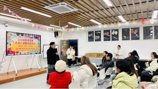 2026年1月4日晚,成都职业技术学院高新校区B105教室灯火通明、欢声不断,“2025成职英语角风采汇演暨颁奖典礼”在此隆重举行。本次活动由成都职业技术学院国际交流合作处、国际教育学院主办,共青团成都职业技术学院委员会协办,外语社承办,以“Show Your Voice, Celebrate Excellence”为主题,集中展示了本年度英语角活动的丰硕成果,营造了浓郁的外语学习与文化交融氛围。