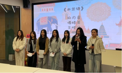 3月20日,我校举办跨国诗歌朗诵活动,泰国、蒙古留学生以泰语、中文、英文多语种诵读经典诗篇。