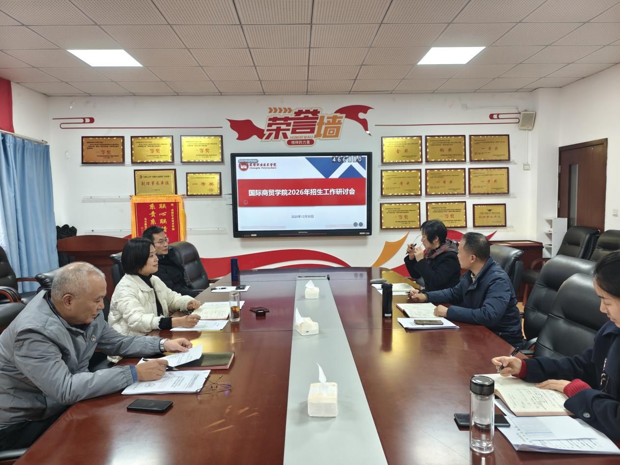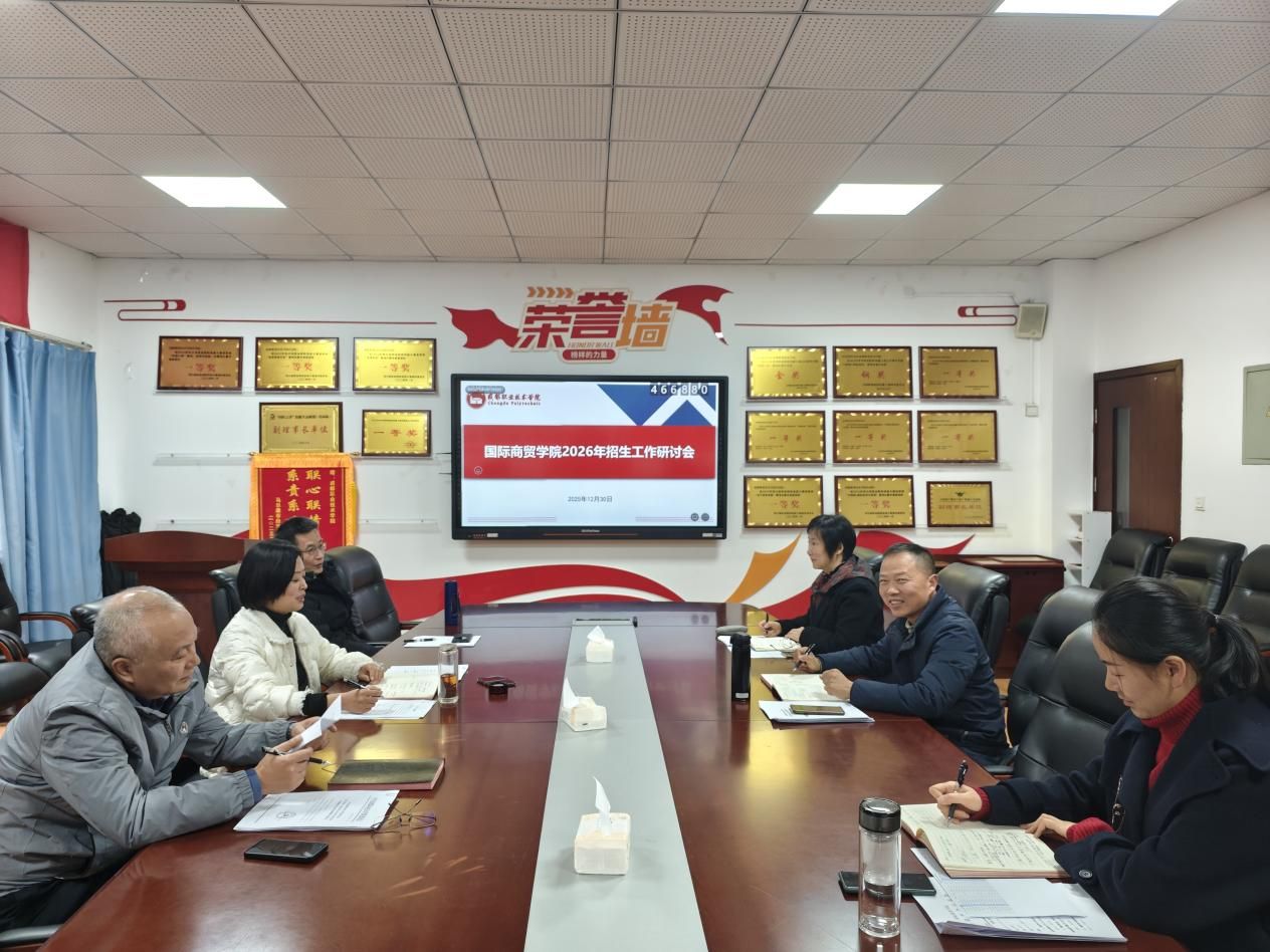 为深入落实学校对招生就业工作的要求,推动国际商贸学院招生工作有序开展,12月30日9:30,学院在花源校区B205会议室召开招生工作研讨会。党总支书记陈宜华、院长黄平平等招生工作小组成员出席会议。