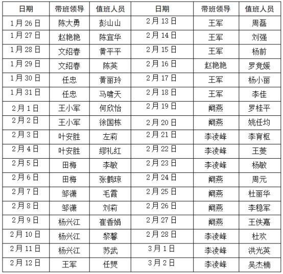 成都职业技术学院花源校区安全值班值守安排表