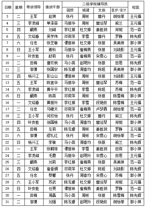 成都职业技术学院花源校区安全值班值守安排表(2026年3月)