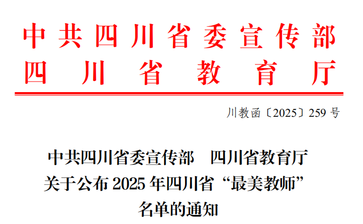 此次缪礼红老师入选四川省“最美教师”,既是对她坚守教育初心与育人成绩的高度肯定,也充分展现了我校教师扎根一线、立德树人的时代风采。