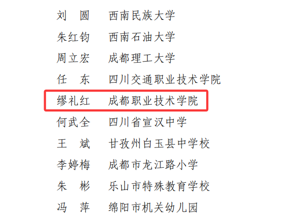在第41个教师节即将来临之际,四川省委宣传部、省教育厅联合发布《关于公布2025年四川省“最美教师”名单的通知》。经单位组织推荐、省级层面综合评审等程序,全省10名教师被评为2025年四川省“最美教师”,我校医护学院教师缪礼红成功入选。