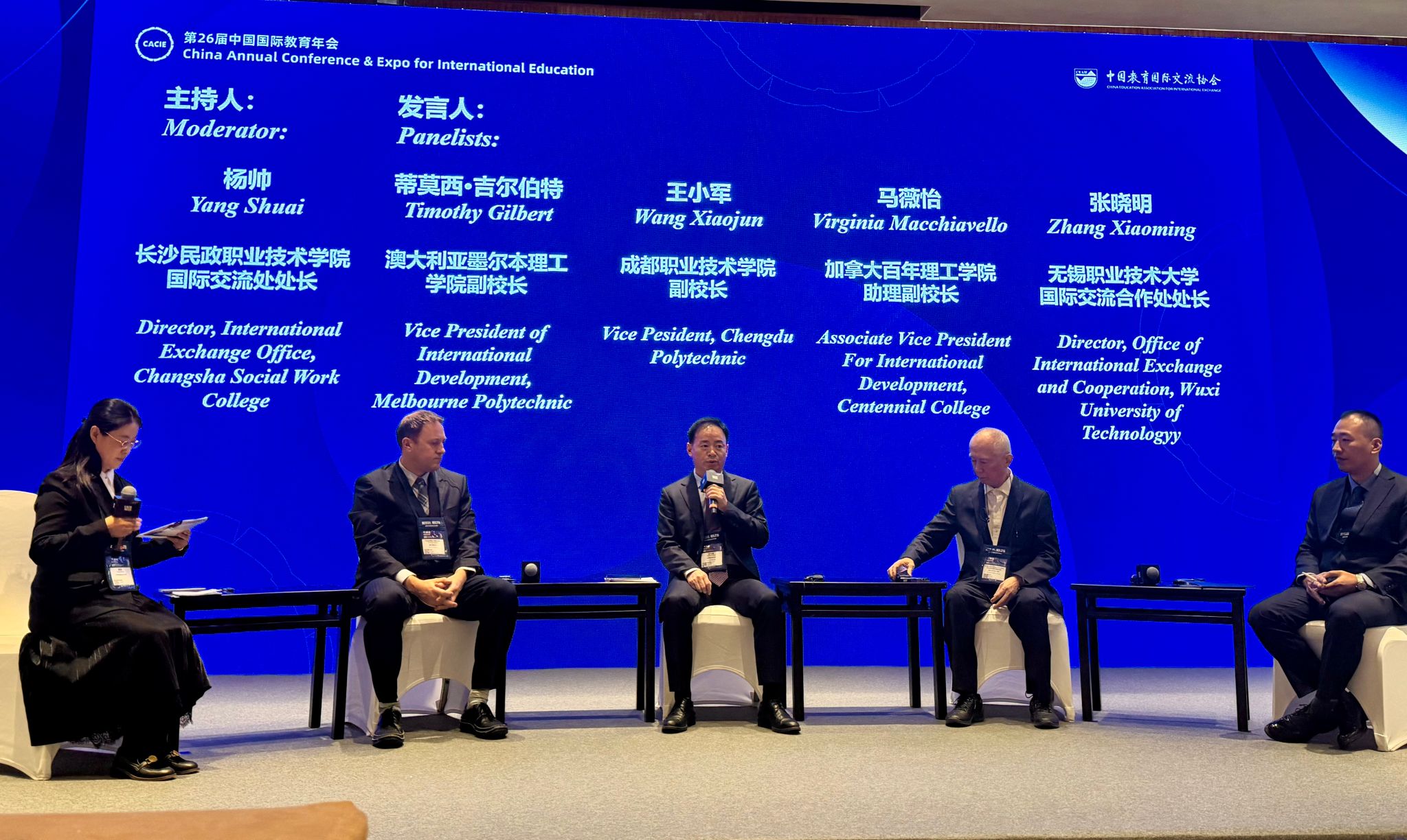 第26届中国国际教育年会于2025年10月29日至31日在北京隆重召开。期间,“中外合作办学高质量发展” 专题研讨会成功举办。学校党委委员、副校长王小军受邀参会并作交流发言,系统分享学校在中外合作办学领域的实践成果与创新探索,相关经验获与会嘉宾高度肯定。