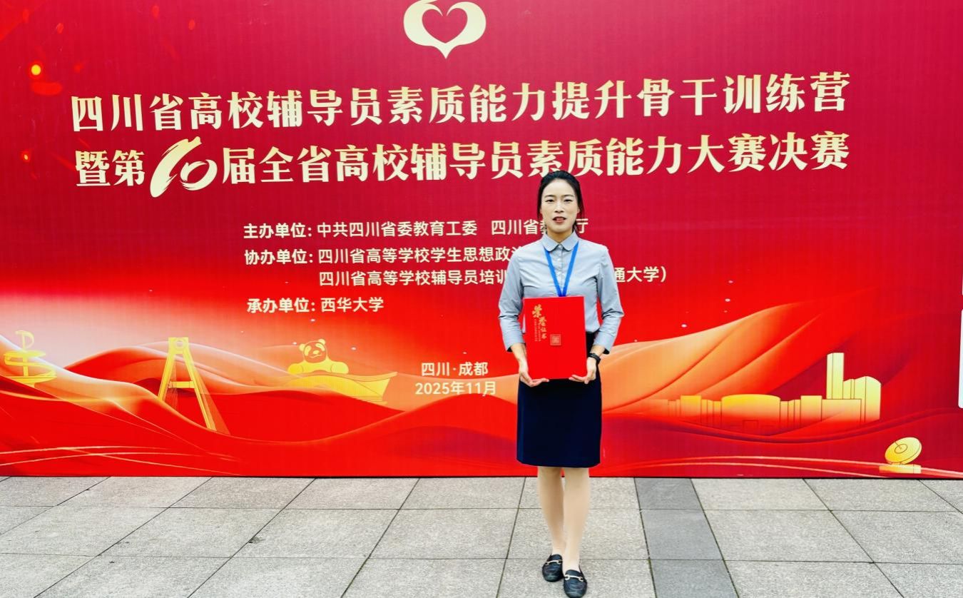 11月15日至16日,由四川省教育厅主办的四川省高校辅导员素质能力提升骨干训练营暨第10届全省高校辅导员素质能力大赛在西华大学(郫都校区)成功举办。经过激烈角逐,我校辅导员吴世琴凭借扎实的理论功底、出色的专业素养和稳定的现场发挥,荣获大赛二等奖。