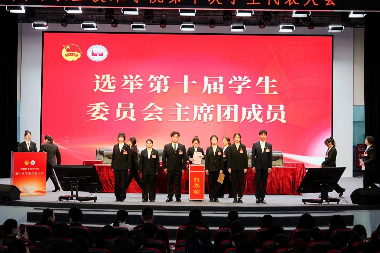开幕会后,大会听取、审议并通过了认《成都职业技术学院第十次学生代表大会筹备工作报告》、《成都职业技术学院第九届学生委员会工作报告》、《成都职业技术学院第十次学生代表大会选举办法》、《成都职业技术学院第十次学生代表大会学生代表提案报告》、总监票人、监票人和总计票人、计票人名单。在民主、公正、公开的氛围中,代表们以无记名投票方式,差额选举产生了我校第十届学生委员会委员及主席团成员。