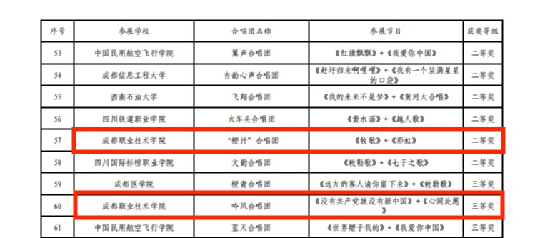 近日,由四川省教育厅、重庆市教育委员会、贵州省教育厅、云南省教育厅联合主办的第三届西部学校音乐周展演活动获奖名单正式公布。我校大学生艺术团选送的作品分别荣获大学生甲组二等奖和三等奖,充分展现了我校学子卓越的艺术风采与昂扬向上的精神风貌。