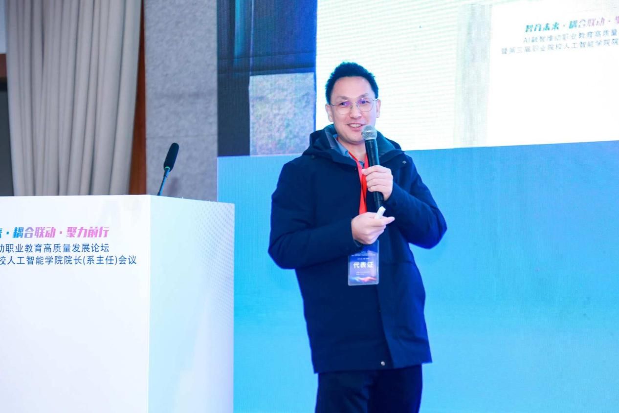 我校由副校长叶安胜带队,人工智能学院副院长简显锐及专业教师一行七人出席会议,积极参与联盟筹备与专业研讨。在“高职院校国家级高水平人工智能技术应用专业群建设的难点痛点”单元,叶安胜作了题为《成职人工智能专业群建设思路与建设路径》的主题分享,系统阐述了我校在人工智能专业群建设中的育人理念、课程体系、产教融合与实践创新等方面的探索与成果,获得与会专家与兄弟院校的高度认可。