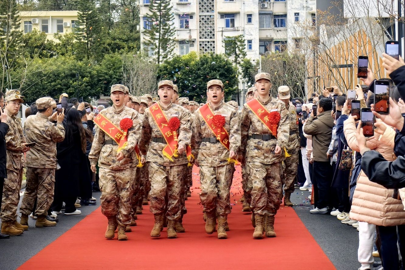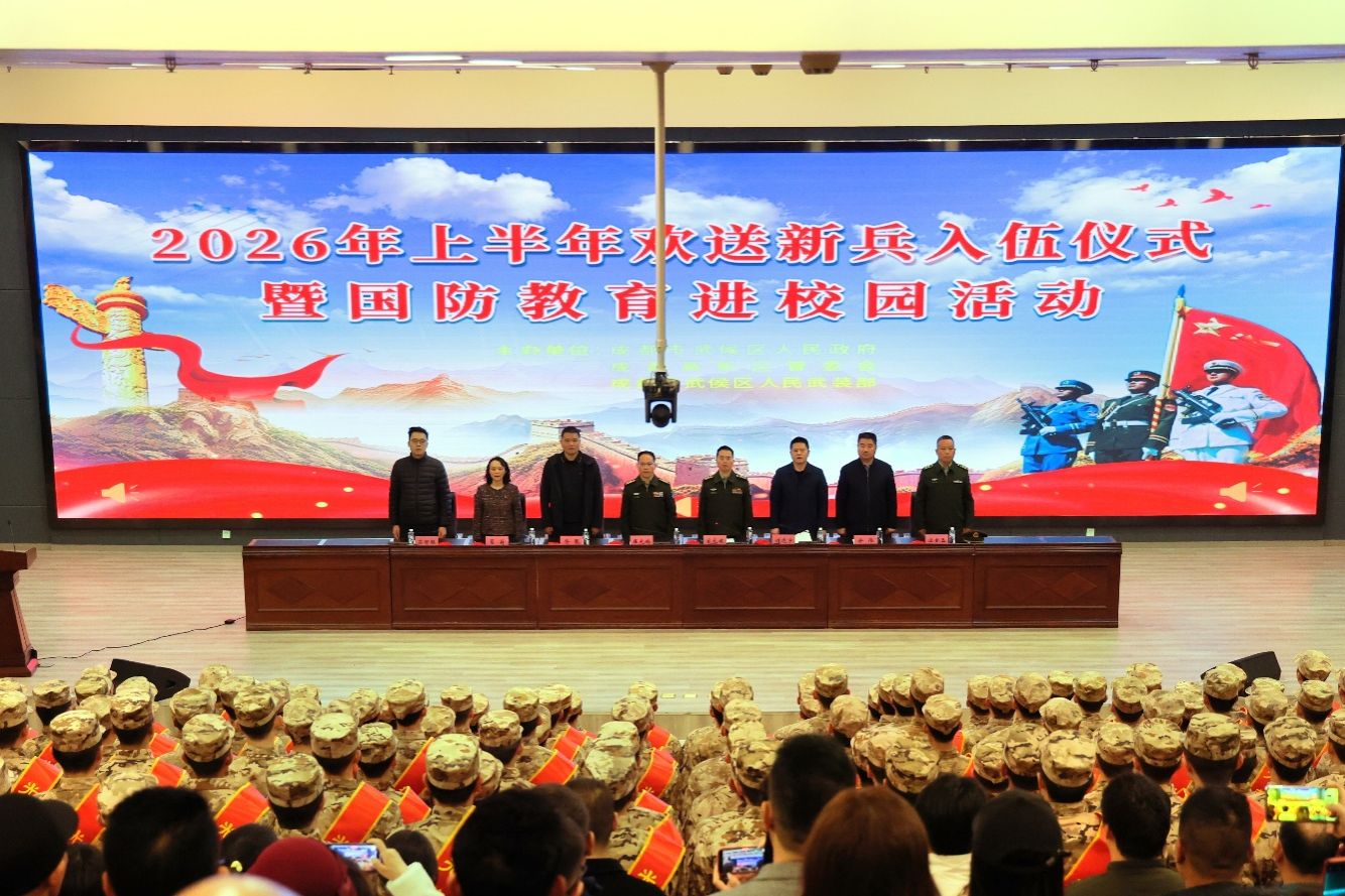 戎装出征,青春报国;成职青年,志在四方。3月15日,武侯区、高新区隆重举行2026年上半年欢送新兵入伍仪式,我校大学生入伍新兵一身戎装,整齐列队,向祖国报到。