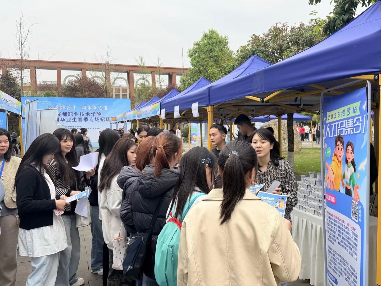为全方位护航毕业生求职,我校联合成都市新津区人力资源和社会保障局、新津区工商业联合会(总商会),在现场同步设置政策宣传就业指导区,精准解读就业创业扶持政策,提供面试模拟、简历优化、岗位匹配、职业发展咨询等定制化服务,全方位提升学子求职竞争力,打通从政策知晓到岗位对接的全流程就业通道,切实护航毕业生高质量就业。