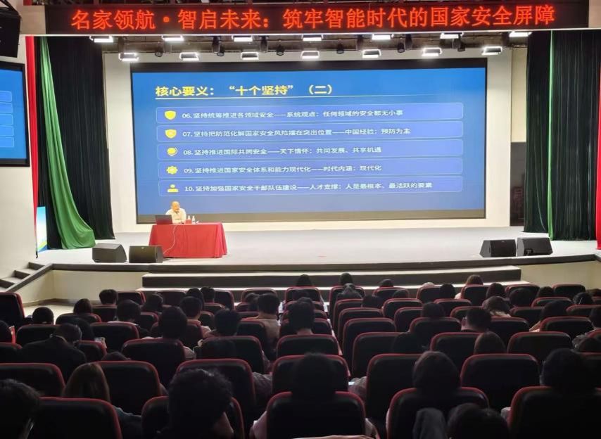 本次活动还邀请四川省高校思政课“陈驰名师工作室”首席专家、四川师范大学继续教育学院院长、博士生导师陈驰教授,举办了《筑牢智能时代的国家安全屏障》专题讲座。陈驰教授作为在宪法学、行政法学及思想政治教育领域的资深专家,兼具省委宣讲团专家、省政府行政复议委员会委员等多重身份,其讲座深度融合了法学、政治学与前沿科技视角,为现场来自马克思主义学院、人工智能学院、电子信息工程学院、财经学院的200余名师生代表,深刻剖析了智能时代下面临的国家安全新挑战与新机遇。