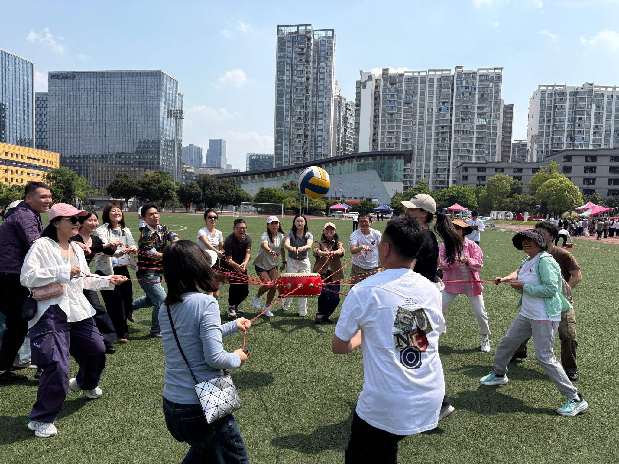 4月24日下午举行的竞赛项目更是紧张激烈,又趣味横生。本次运动会设置个人与集体两大类别项目,兼顾趣味性与竞技性。个人项目中,教职工们各展所长,在轻松氛围中比拼技巧、享受运动;集体项目投壶比赛、“鼓动人心”“珠行万里”等则考验团队协作,参赛队员齐心协力、默契配合,现场掌声、欢呼声此起彼伏。