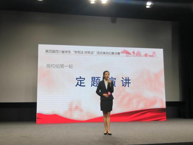 我院2018级投资与理财专业贾俊琦同学经过“定题演讲”与“命题演讲”两轮激烈比拼,从来自全省本专科院校的27名决赛选手中脱颖而出,最终荣获四川省“学宪法 讲宪法”演讲比赛高校组一等奖。院团委徐沁老师获“一等奖优秀指导教师”。