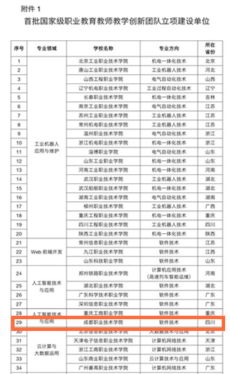 近日,教育部公布首批国家级职业教育教师教学创新团队立项建设单位名单,我院杨仕清教授领衔的“软件技术专业团队”成功入选。