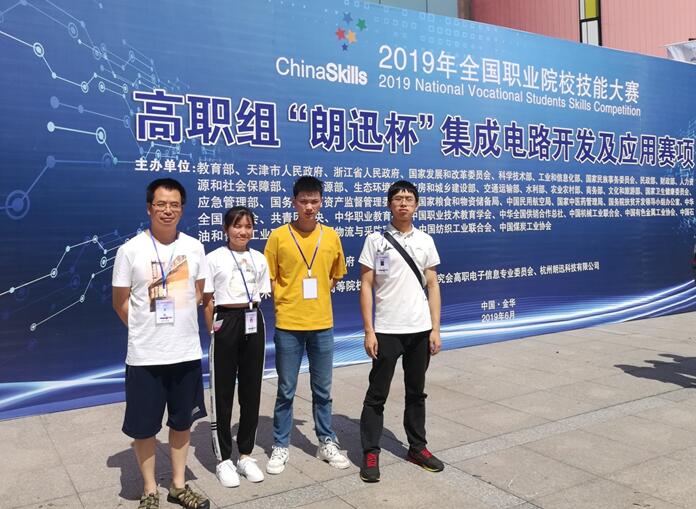 6月12日,2019年全国职业院校技能大赛集成电路开发及应用赛项在浙江金华职业技术学院举行,共有来自全国32个省(市、区)以及海外的89支代表队参加角逐,由我院软件分院吴松霖、杨富程、陈宇杰3位同学组成的代表队在指导老师梁竹君、刘洪涛的精心指导下,最终荣获团体三等奖。