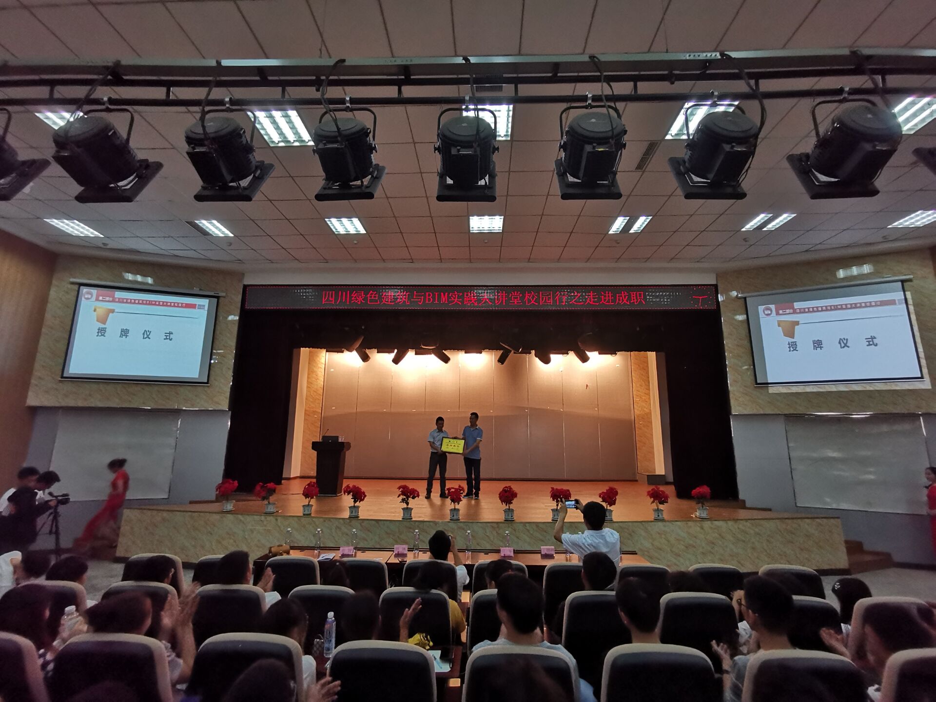 为推动四川省绿色建筑与 BIM 技术的推广应用,为我省绿色建筑与 BIM 技术发展应用建立长期稳定的学习搭建交流平台,联合行业和企业专家助力我省建筑业的发展,实现绿色建筑和 BIM 技术的真正落地。由四川省住房和城乡建设厅指导,四川省建设科技协会、四川省建设工程质量安全与监理协会、四川省房地产业协会主办的四川省绿色建筑与 BIM技术实战大讲堂活动之走进成职,于 2019 年 5 月17日下午在成都职业技术学院花源校区牧山讲堂开讲。