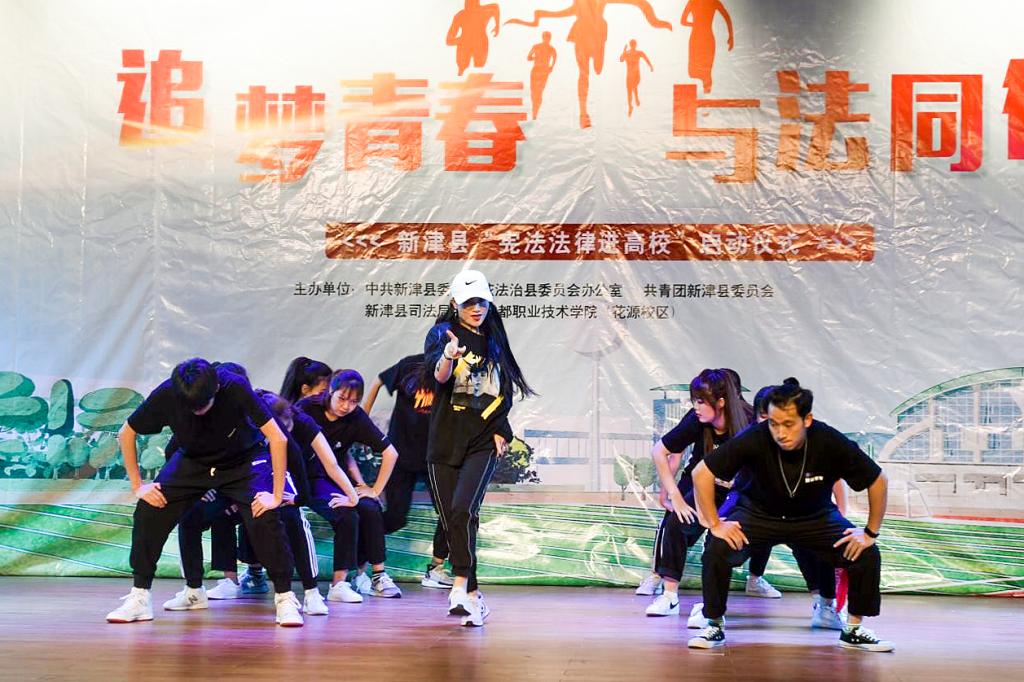 启动仪式上,我院同学们带来了精彩的文艺表演和法治快闪节目——“追梦青春·与法同行”,姚蕴珊、雷向东为我院高校法治宣传代言人颁发了聘书,法治宣传代言人柯会英同学作“争做新时代守法好青年”倡议。启动仪式结束后,新津县相关部门联合开展了首场高校法律服务活动。