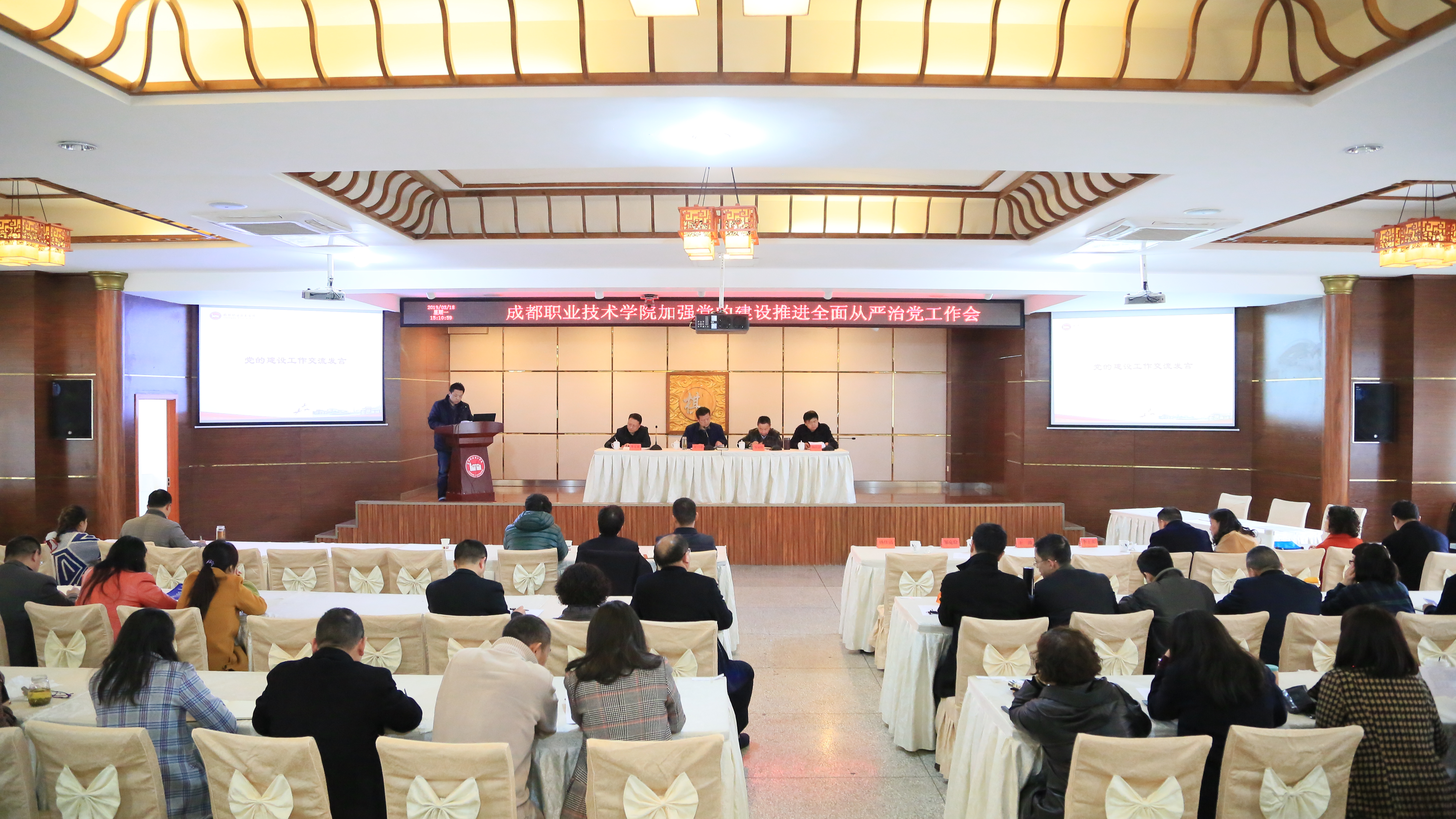 按照会议安排,全体人员观看党风廉政警示教育片。学院旅游分院、医护分院、软件分院和后勤产业处等4个代表分别就基层党建工作、意识形态工作、宣传统战工作、纪检监察工作作交流发言。