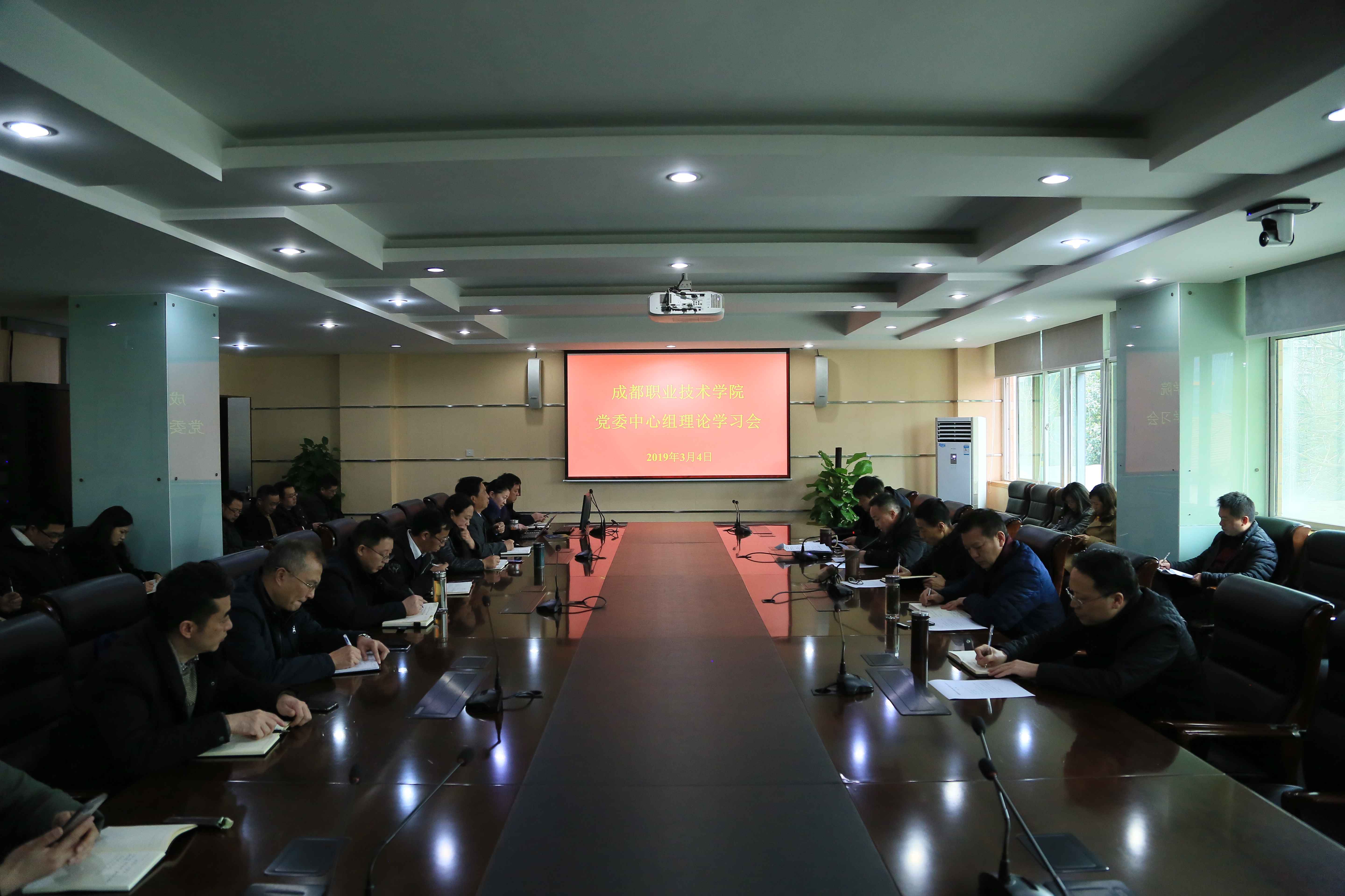 3月4日,学院召开党委中心组学习扩大会,传达学习全市组织部长会议 精神、市委农村工作会议暨全市农村人居环境整治工作推进大会精神,组织学习教育部全面从严治党工作视频会议和市纪委印发《关于贯彻落实习近平总书记重要指示精神集中整治形式主义、官僚主义问题的工作措施》精神。党委书记周鑑主持学习会,全体院领导班子成员和中层干部参加会议。