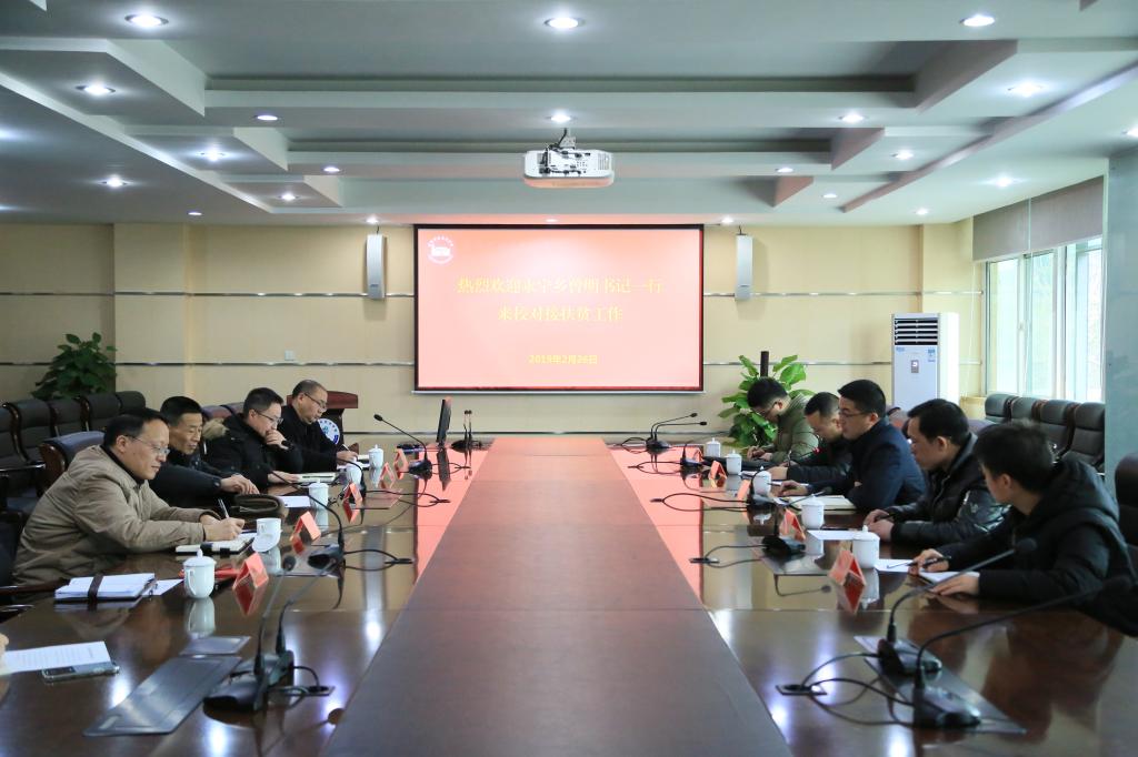 扶贫贵在精准,重在精准。2019年2月26日,简阳市永宁乡党委书记曾明一行到我院对接2019年精准扶贫工作,共商扶贫需求。学院党委书记周鑑,党委副书记、纪委书记邹克俭,学院副院长、工会主席李王英出席工作会,党政办公室、扶贫办公室负责人参会。