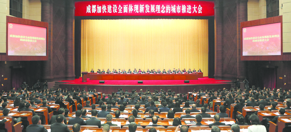 省委常委、市委书记范锐平出席会议并讲话。他强调,要坚持以习近平新时代中国特色社会主义思想为指导,进一步坚定信心决心,科学作为、久久为功,努力实现城市永续发展,满足人民美好生活需要,让新发展理念引领蓉城走向世界。成都加快建设全面体现新发展理念的城市推进大会在锦江大礼堂召开。范锐平高度肯定先进集体和个人用新理念在各行业各领域创造了无愧于城市、无愧于人民的一流业绩,要总结经验、树立榜样,激励广大干部群众比学赶超、创先争优、追赶跨越、再创佳绩。