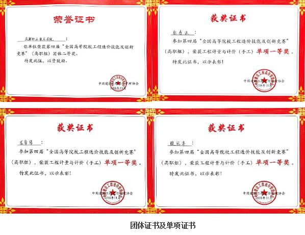 本次比赛分为三个赛项:工程计量及计价(手工)、工程计量软件应用和基于BIM的工程造价控制。工房分院派出由工程造价16级杜春洪、龙李琴和工程造价17级赖记洋三位同学组成的参赛团队,同学们不惧压力、沉着应战、通力合作,先发制人,经过一天的激烈对抗,获得工程计量与计价(手工)赛项一等奖。同时,三个单项总成绩位于全国第12名,四川省第1名,荣获团体二等奖。韦秋杰、王婷两位老师被评为“优秀指导老师”。