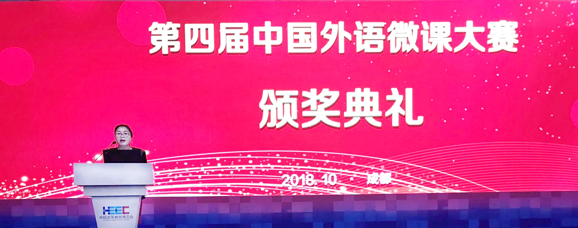 此次大赛选手采用多种形式制作微课,涉及题材广泛,涌现出大量优秀作品,也造就了一批视频制作水平高超、教学技能扎实的外语教师。我院余丽莎教师团队从选题到课程设计,从教学理念的渗透到教学基本功展示,从视频呈现设计到视频模态动画的选择,从教案编写到课后作业的处理等多个环节都得到了专家评委的一致认可和好评,最终获得高职高专组一等奖,并受邀在颁奖典礼上作交流发言。