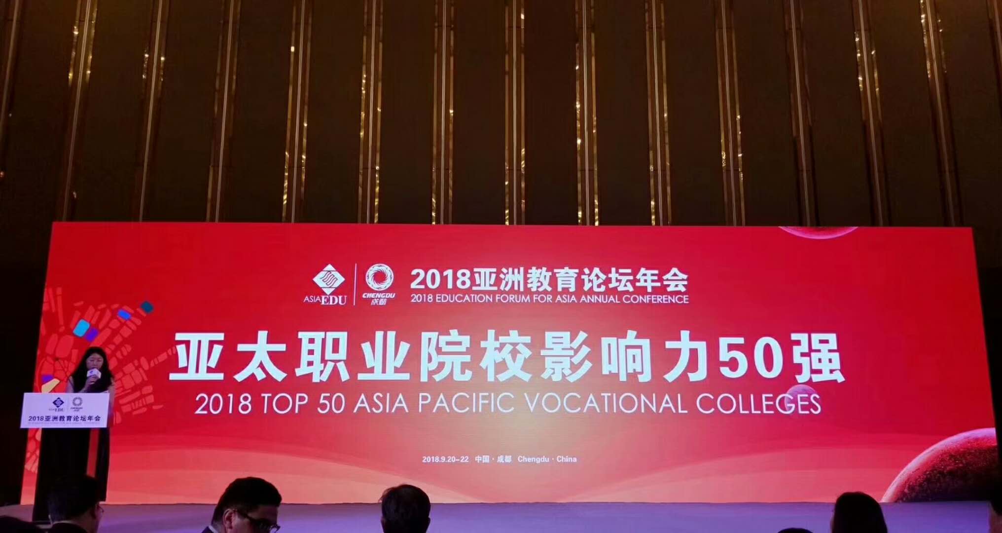 9月21日,“2018亚洲教育论坛年会”在成都开幕。来自26个国家和地区的政界领袖、高校校长、专家学者、顶尖智库专家、驻华使节、国际组织和媒体代表1500人齐聚一堂,围绕“构建人类命运共同体,共筑亚洲教育美好明天”主题共商教育大计。我院在论坛年会上荣获“亚太职业院校影响力50强”称号。