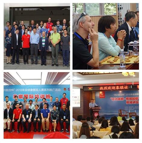 9月11日下午,“四川航空杯”2018年全球象棋双人赛系列校园文化推广活动在我院棋艺学院隆重举行,开展了象棋国际培训会和“棋城讲坛”两项重要活动。学院副院级调研员杨仕清,中国象棋协会竞赛部主管陈浩,成都棋院院长、成都棋艺学院院长蒋全胜,成都棋艺学院执行院长陈月梅,成都棋院办公室主任郭瑞霞出席活动,吸引了多家媒体关注,棋艺专业、棋艺社团和财经分院的同学们踊跃参与。