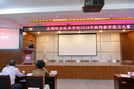 2018年7月12日下午,我院2018年教师教学能力大赛决赛活动在高新校区棋艺学院学术报告厅顺利进行。大赛由学校教务处牵头筹划和组织,各分院(部)具体负责实施。经过各分院(部)初赛,全校参赛的42个教师团队中产生了14名三等奖,并推荐了优秀教师团队参加决赛。