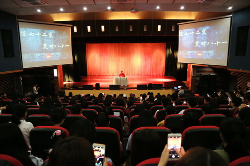 讲座中,他穿插讲述了《西游记》拍摄过程中的喜怒哀乐和幕后小故事,深入浅出地分享了其中蕴含的人生哲理。章老师说,“人生能做好一件事就非常了不起,关键在于坚持。要做到人无我有,人有我好,人好我精,人精我绝,终能取得人生真经”。同时“年轻人要学习领会中华民族优秀传统文化的精髓,努力成为中国文化的传承者”。章老师语言幽默风趣,讲述内容生动丰富,感情真挚贴切,讲座中数十次被同学们热烈的掌声打断。