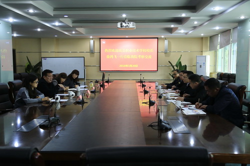 3月20日,四川省高县职业技术学校校长徐鸿飞一行5人莅临我院交流,协商中高职衔接、中职教师培训等,与我院院长王涛及相关部门负责人进行了友好交流。