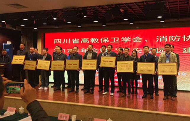 会上对四川省高校2016-2017年度“平安校园”先进单位进行了表彰,我院荣获2016-2017年度四川省高校“平安校园”建设先进单位;学院保卫处李剑荣获2016-2017年度四川省高校“平安校园”建设保卫干部先进个人;校卫队员陈光辉、王小林、潘碧芳、费怀成四人荣获2016-2017年度四川省高校“平安校园”建设保安先进个人;刘一、王成雪两位同学荣获2016-2017年度四川省高校“平安校园”建设学生先进个人。会上宣布了更换第八届四川省高校保卫学会、消防协会组织机构的个别人员名单。