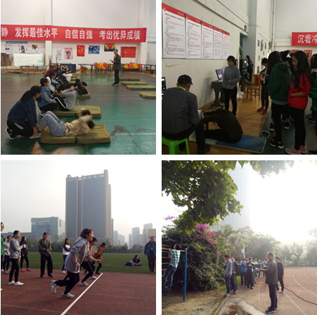 2017 年 11 月 2 日,教育部派出的《国家学生体质健康标准》专家工作组莅临我院开展体质健康标准测试抽查复核工作。专家组一行六人首先查看了学院体质测试实施方案、安全应急预案、体育工作规划等相关材料,了解学生身体状况,检查测试仪器、器材、场地。随后抽检了 210 名学生,全程参与和监督包括肺活量、立定跳远、坐位体前屈、 1 分钟仰卧起坐(女) / 引体向上(男)、 800 米跑(女) /1000 米跑(男)等 10 个项目的现场测试 , 并不时地随机访问、抽查受检学生。