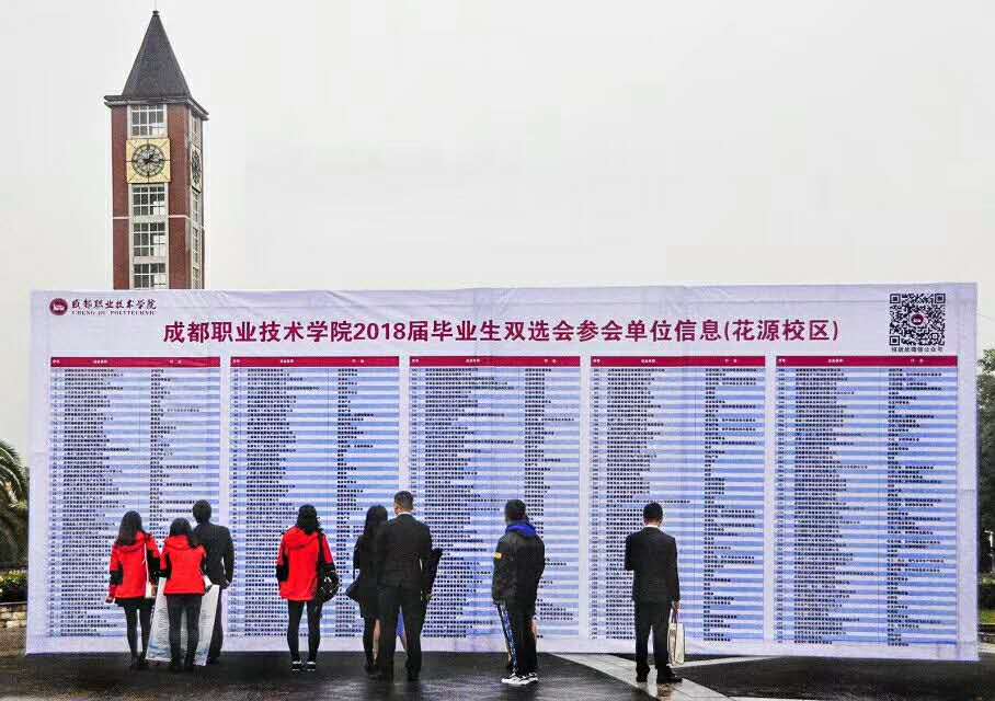 2017年10月我院分校区举办了两场校园双选会。双选会吸引了英特尔产品成都有限公司、中建三局成都公司、成都中电熊猫显示科技有限公司、成都家园国际酒店有限公司、成都泰合索菲特大饭店、成都棋院、华夏银行、四川君集律师事务所、沃尔玛(中国)投资有限公司成都分公司、重庆力帆汽车有限公司、深圳市大广发物流有限公司等620余家企事业单位参会,提供了包括网页设计师、售后工程师、会计、财务助理、建筑工程管理人员、棋类教练等职位,共计岗位9000余个。我院3300余名应届毕业生参加了双选会,求职人数与提供岗位比达到了1:2,部分专业达到1:5。充足的就业岗位让同学们的就业选择更多,就业面更广,就业形势良好。