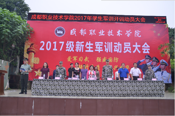 9月4日上午,学院2017级新生军训动员大会在成都市国防教育训练基地广场隆重举行。出席动员大会的领导有学院副院长齐虹,成都市国防教育训练基地军训团团长汪骄、参谋长杨坤、政治处主任叶宁,以及学院学生处处长薛潇潇、保卫处处长(武装部部长)罗兴伦、学院团委书记张帆等。大会由军训基地参谋王惠主持。