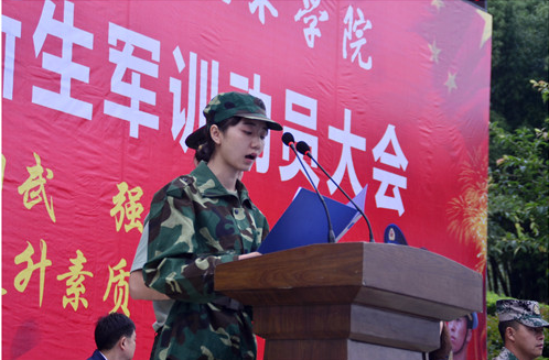 学院副院长齐虹宣布2017级新生军训正式开始。