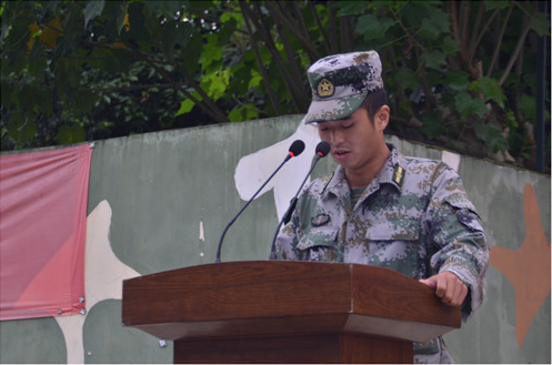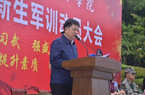 学院保卫处长罗兴伦在军训动员会上发言。他首先对全体新同学表示热烈的欢迎和祝贺!向承担这次军训任务的成都市国防教育训练基地全体官兵表示衷心的感谢和崇高的敬意!同时寄语新生:军事训练是同学们大学生活的重要一课,是你们迈向新的人生旅途的重要一步。 希望大家要以饱满的热情、顽强的毅力、威武的军姿、强烈的团队意识来展示当代大学生的青春活力和挑战自我、奋发向上的精神风貌,为自己的大学生活和整个人生历程增添一页激越昂扬的华彩篇章!最后预祝军训取得圆满成功!