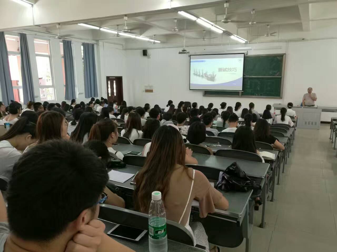 两个校区共有800余名学生认真聆听了讲座,专家为同学们分享自己积累多年的丰富的企业管理和人力资源管理经验,从各个方面为同学们解读找工作面试时的技巧,让同学们自信满满的入职场。