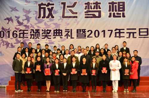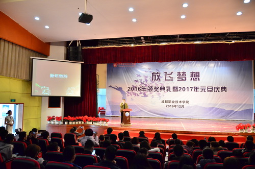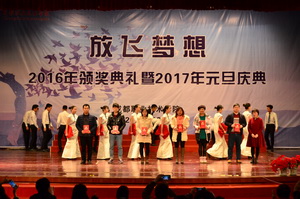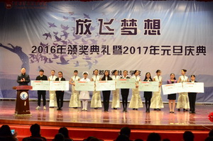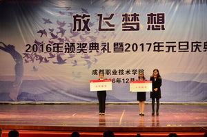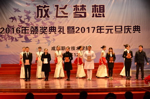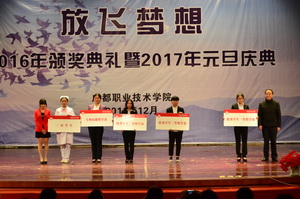 12月29日下午,我院隆重举行“放飞梦想”2016年颁奖典礼暨2017年元旦庆典,学院副院长王涛,副院长、工会主席李王英, 副院长齐虹,部分处室(部门)负责人、各分院部党总支书记(副书记)及学生代表参加了庆典。