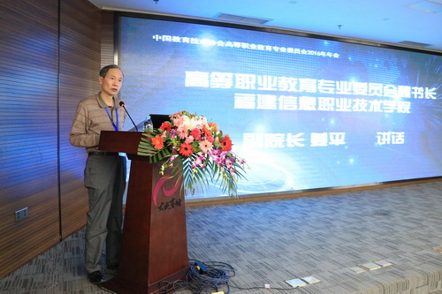 会上,中国教育技术协会副会长兼秘书长丁新教授围绕教育信息化创新发展的会议主题,指出中国教育技术协会应是教育信息化的参与者、推动者、代言人和学术引领者,同时应通过产、学、研三方的结合带动教育信息化的创新,从而提高各教育机构的办学水平。福建信息职业技术学院院长江吉彬和高等职业教育专业委员会秘书长、福建信息职业技术学院副院长姜平作为中国教育技术协会高等职业教育专业委员会主任委员单位代表做了会议讲话。