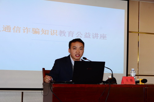 王镭老师的讲座分为三个部分,第一、通信诈骗的形势和危害。介绍了境内通信诈骗的形势和境外的情况,境外主要介绍了台湾、泰国、斯里兰卡、肯尼亚等国家和地区的通信诈骗的状况。通信诈骗的危害首先是受害人的经济蒙受损失,严重的造成家破人亡的等。第二、通信诈骗的作案手段。作案手段基本是网络、电话、QQ、微信等。犯罪嫌疑人作案流程是一环扣一环的。第三、如何应对通信诈骗。首先是管好自己的身份信息;其次凡是涉及转款的信息,一定要确认信息的真实性,小心谨慎等。