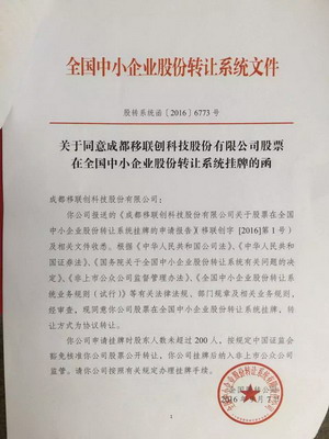 近日,创业学院园区企业成都移联创科技股份有限公司隆重举行挂牌仪式,成功挂牌全国中小企业股份转让系统。