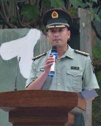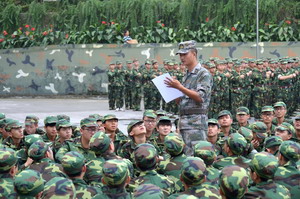 动员大会在庄严的《中国人民解放军军歌》声中拉开序幕。军训团参谋长何强在动员大会上致辞。他讲到:相信在学院领导、老师的信任和支持下,在参训学员的积极配合下,全体官兵有信心、有决心圆满完成任务,达到预期目标。他提出三点要求:一是合理安排、讲究方法、科学施训;二是对照标准、文明施训、提高效率;三是希望受训学生做好准备,积极面对、挑战自我,勇于胜利,充分展现当代青年学生朝气蓬勃、乐观向上的精神面貌和热血豪情。
