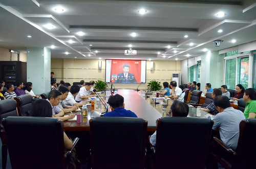 围绕“两学一做”学习教育,为提升在任和新任干部思想政治素质和综合领导能力,7月9日,学院在高新校区行政楼二楼会议室召开干部培训会,进一步加强干部的党性修养、工作作风、工作能力和廉政意识,再次学习了习近平总书记在庆祝中国共产党建党95周年大会上的讲话精神。党委书记周鑑在会上讲话,党委副书记、院长贺继明主持培训会。