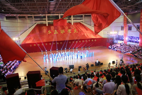 6月29日,由市委宣传部主办、阳光艺术团和成都大学学生艺术团共同演绎的庆祝建党95周年“永远跟党走”文艺晚会在成都大学体育馆隆重举行,来自各市属高校的近2000名党员师生观看了演出。